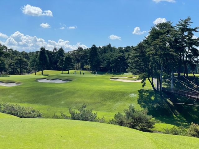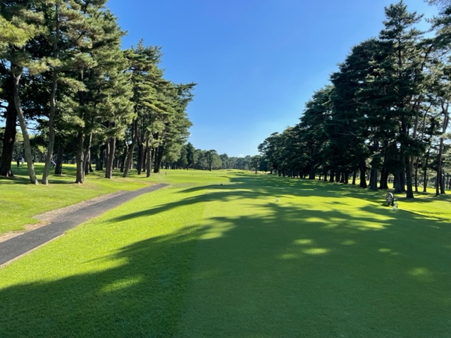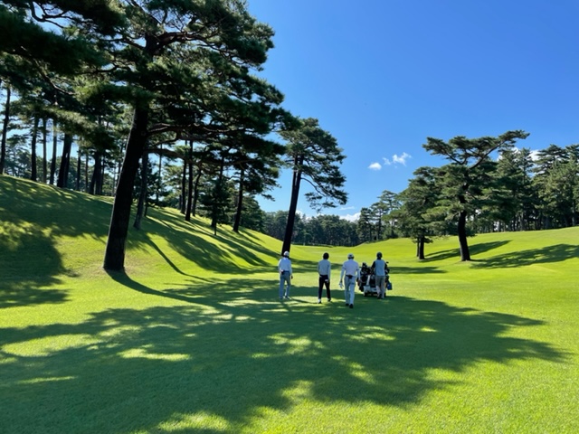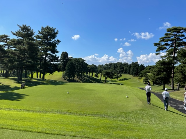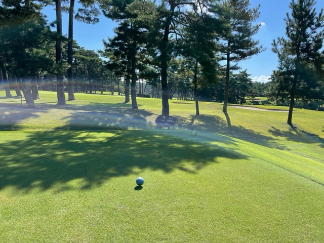 その後、パターを転がして、インから。今日は縁の会員さんのT.KさんとK.Tさんが加わっての4名で廻ります。今日のグリーンはCグリーン。青ティで進行します。K.Tさんとはマッチプレーで楽しみます。