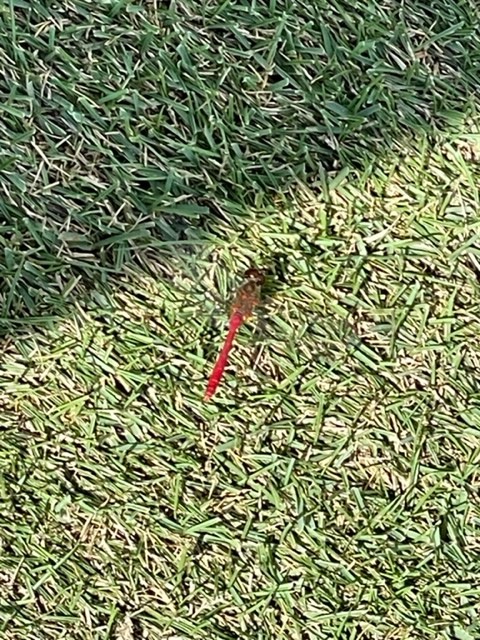 3番502yロングは、ドライバーはまずまず。キャディさんから3wを貰い、打つ。打った瞬間目にゴミが入り、どこに飛んだか分からず。で、どうやら、前の組のカート手前50y付近に飛んだようで、キャディさんから「打ちこんじゃったかも?」の声が。えー、まずいじゃん。私は脱兎のように駆け出した。で、言って「すみませんでした」と声を発すると「全然大丈夫です」の声が。ホッとしました。が、ちょっと草臥れちゃいました(笑)。残り88yからの3打目をダフる。4打目も寄らず、入らずボギー。相変わらずである。