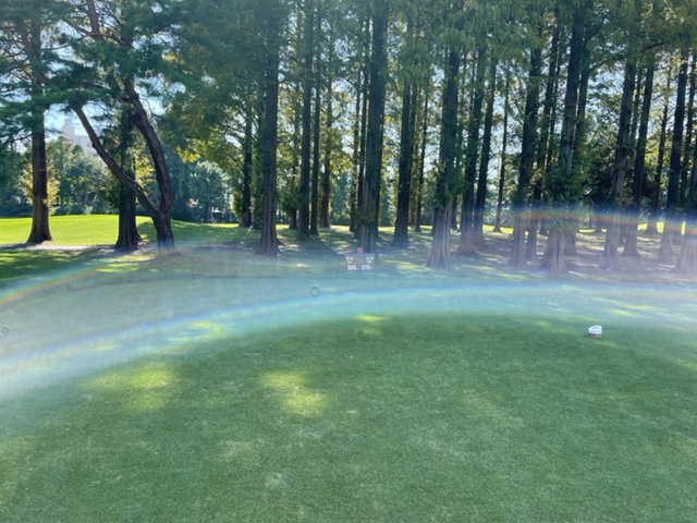 9番352yミドルは、ドライバーは竜巻球。林から8アイアンでチョン出し。56度で3mに。入らずボギー。素晴らしいアプ&パターでY.Hさんがパーゲット。