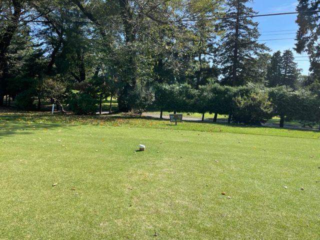 2番166yショートは、7アイアンで打つも引っ掛かる。寄らず入らず。
