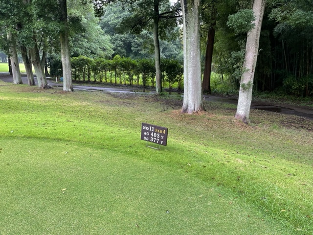 11番377yミドルは、ドライバーは右ラフへ。8アイアンで手前10mに2オン。無難にパー。同じくナイス2オンから今日の主役である千葉県のH.Cさんも無難にパー。