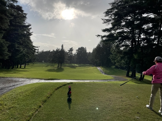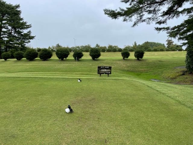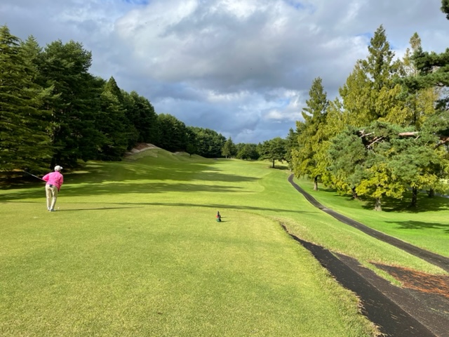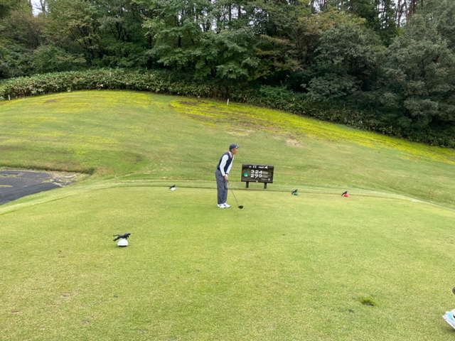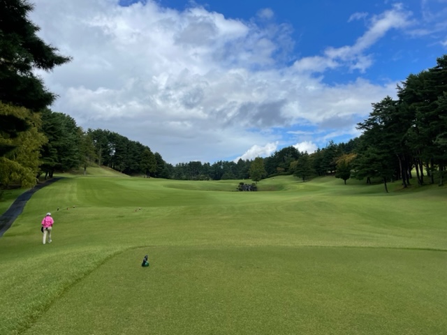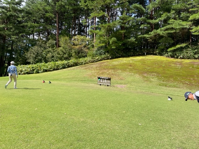 4番353y左ドッグのミドルは、ドライバーはまずまず。8アイアンで打つも右手前へ。ナイスアプでパー。同じくナイスアプでK.Fさんもパー。