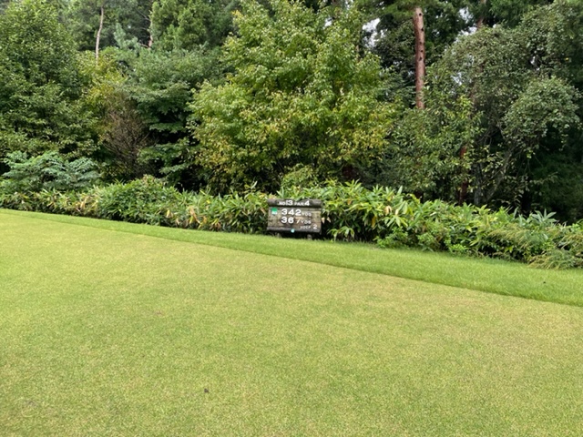 9番474yロングは、ドライバーは左ラフへ。これが深い。6アイアンで打つも飛ばず。3打目も6アイアンで打つも残り70yへ。寄らず入らずボギー。