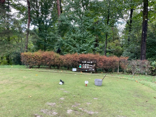 2番133yショートは、8アイアンで打つもカラーへ。無難にパー。ここは皆様が1オンから無難にパー。