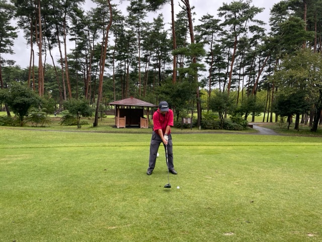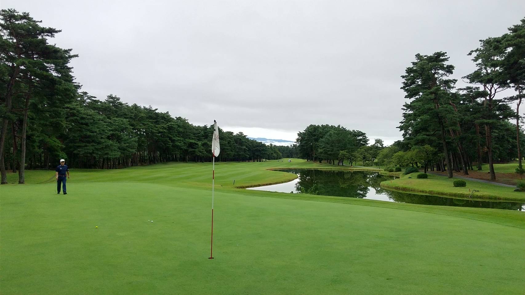 17番154yショートは、6アイアンで打つもどダフリ。SWで8mに。ここからまさかの3パンチダボ。しっかり1オンさせたI.Mさんが無難にパー。