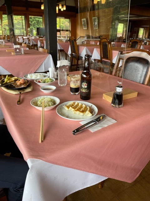 その後、ロッジのキーをいただき、お部屋で浴衣に着替えて、お風呂場へ。その後、17時半過ぎからすき焼きタイム。19時15分からカラオケ、22時、就寝です。