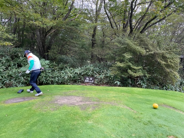 16番239y打ち下ろしショートは、3uで打つもショート。寄らず入らず。