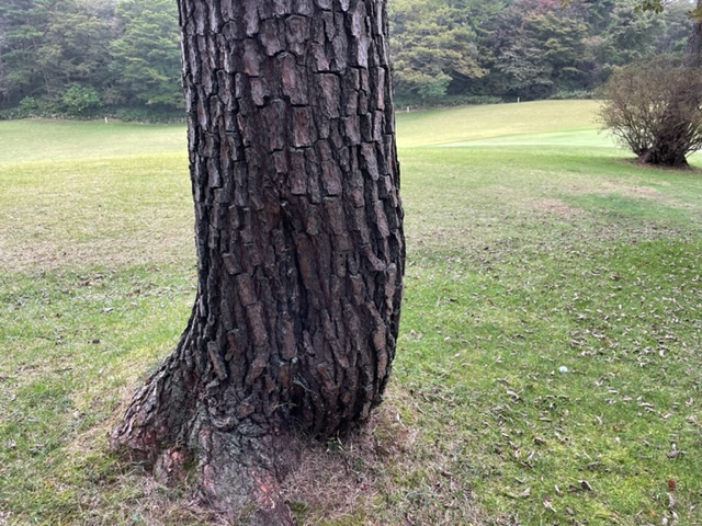 14番337yミドルは、ドライバーで打つも竜巻球。木にくっついている。PWでの左打ちで池を越す。3打目を8アイアンで打つもショート。寄らず入らず連続のダボ。