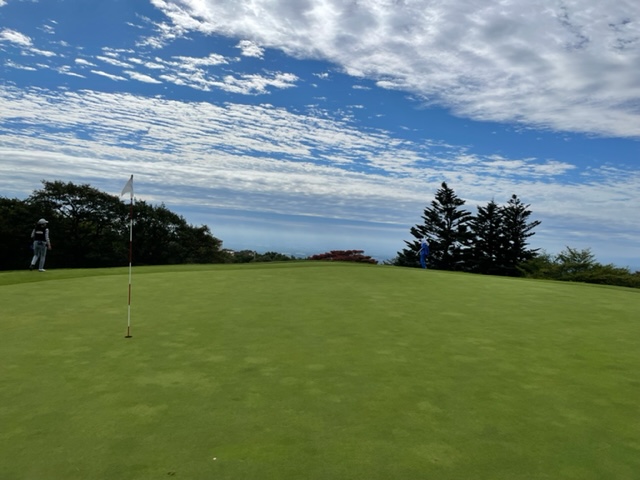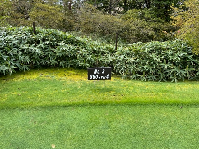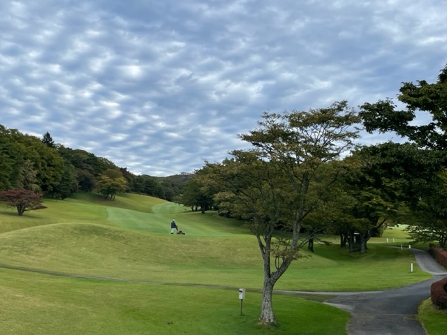18番460y打ち下ろしミドルは、ドライバーはショボ球。3uがどダフリ。3打目が乗らず。やっとのボギー。見事なアプ&パターでY.Yさんがパー。素晴らしい。
