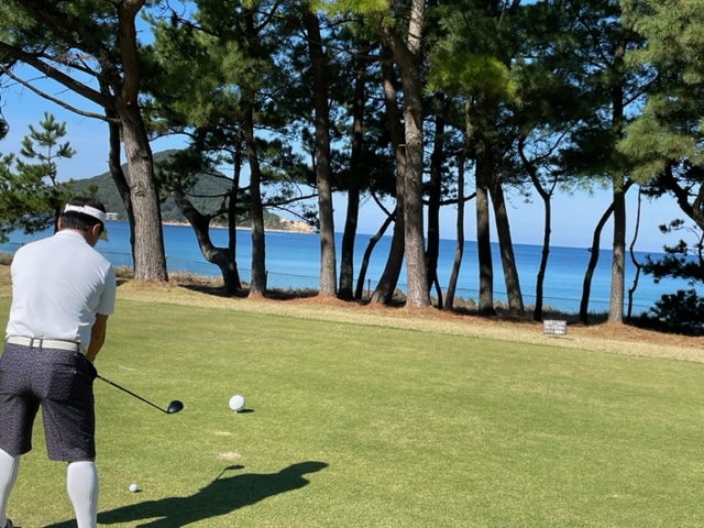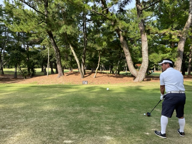 アウトから。我々は白から。縁のM.Oさんはバックティから。今日のキャディさんはスゲーでございます。