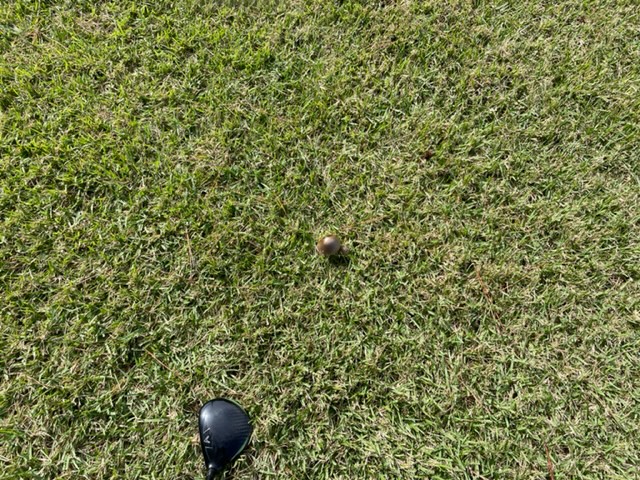 7番425yミドルは、ドライバーは右へ。暫定球を打つ。初球はアウト。5オンで7となる。アチャー。