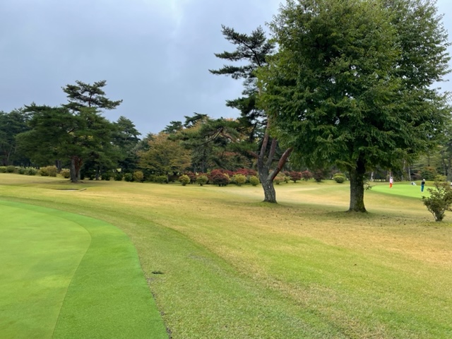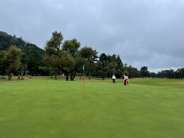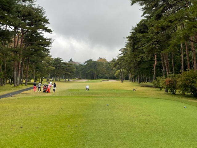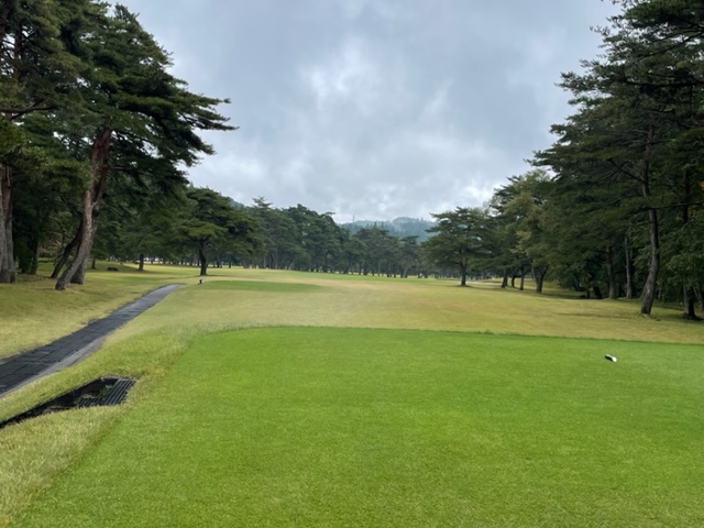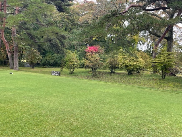 今日は青ティで進行します。アウトから。今日は松本理事長とご一緒します。で、キャディのAさんはあの雨天時の研修キャディだったAさんです。「前田さん、あの時は本当にありがとうございました!今でも辞めないで頑張ってます(笑)」との言葉をもらいました。
