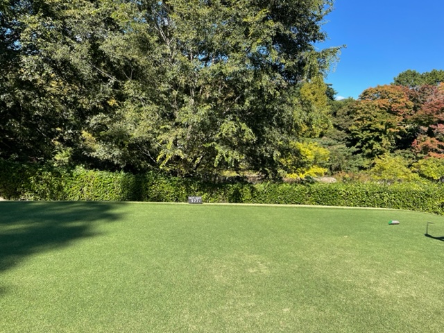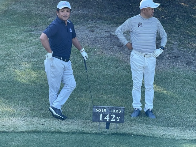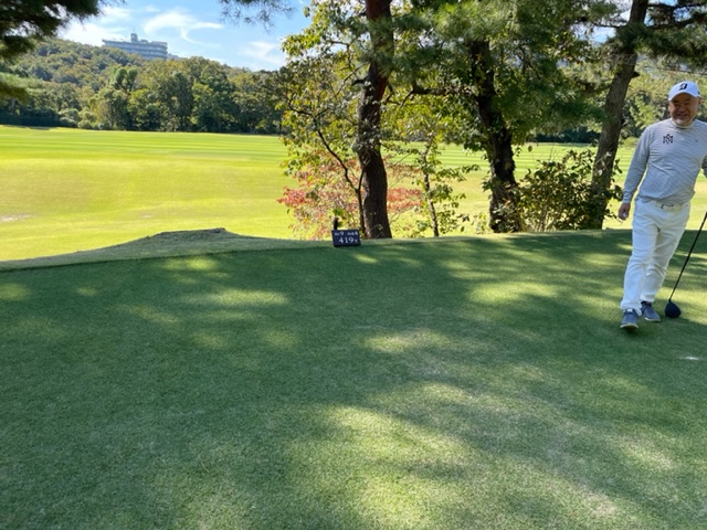 15番142yショートは、9アイアンでピン左8mに1オン。無難にパー。同じく1オンからN.Yさんも無難にパー。