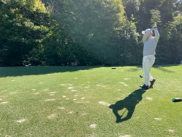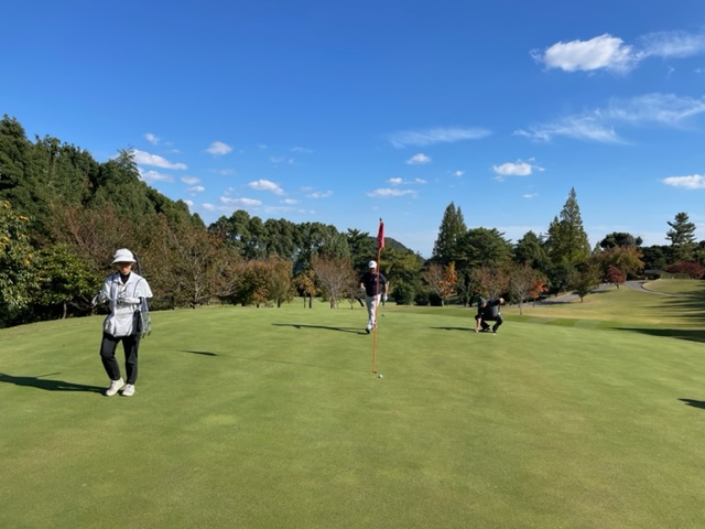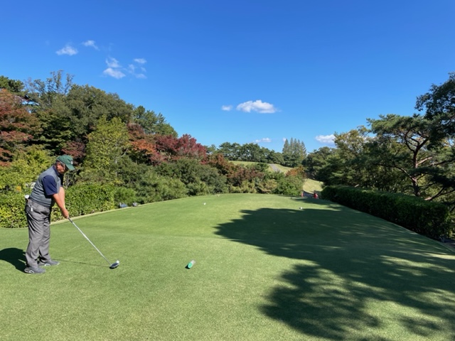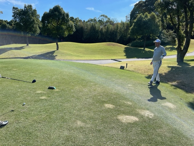 10番459yロングは、ドライバーは左ラフへ。5アイアンでレイアップ。PWで3オン。無難にパー。同じく3オンからM.TさんとT.Kさんが無難にパー。