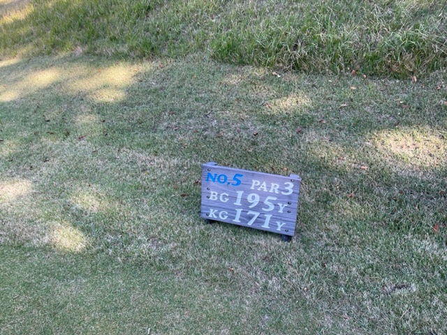 5番打ち下ろしの195yショートは、4アイアンでピン手前8mに1オン。無難にパー。