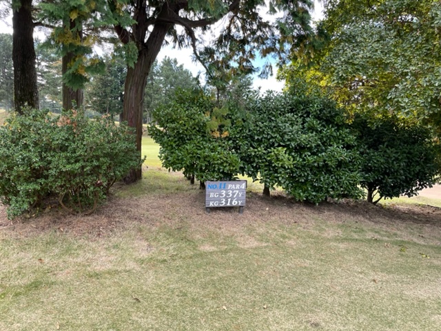 11番337yミドルは、ドライバーはまずまず。9アイアンでカラーの左へ。パターで寄せてなんとかパー。