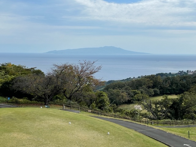 13番198yと伊豆大島などが綺麗に見えるショートは、4アイアンが完璧球。久しぶりにアイアンがまともに当たった。残念パー。