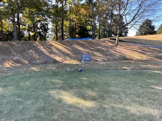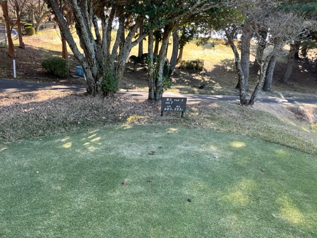 3番543yロングは、ドライバーは左ラフへ。5アイアンでフェアウェイへ。PWで7mに3オン。無難にパー。
