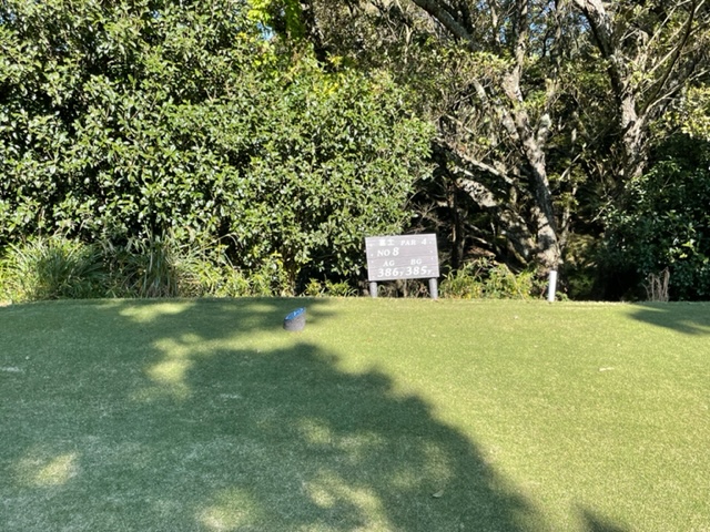 7番437yミドルは、ドライバーはナイス。残り190yから3uでのスライスで狙うも、左へ。寄らず入らず。
