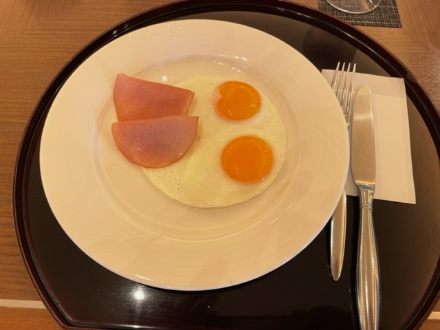 まずは、レストランに行き、ハムエッグを食しながら、独りミーティングです。