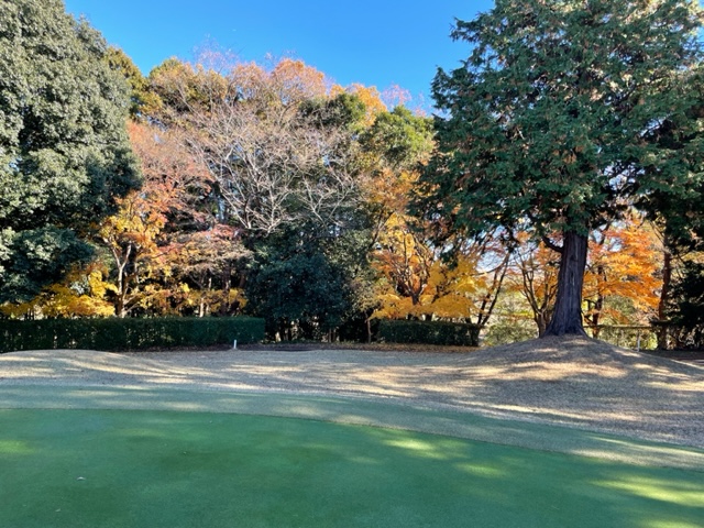 15番156yショートは、ついにここを6アイアンで打つ。奥6mに1オン。放り込んでナイス銀バーディ。素晴らしいアプからY.Aさんが鉄パー。