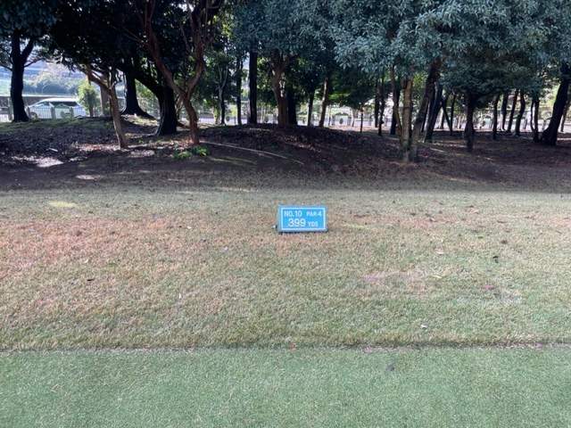 10番399yミドルは、ドライバーはまずまず。なんと私より10歳上のA.Tさんは超飛ばし屋です。素晴らしい。5アイアンで打つも左へ。なんとか寄せてパー。