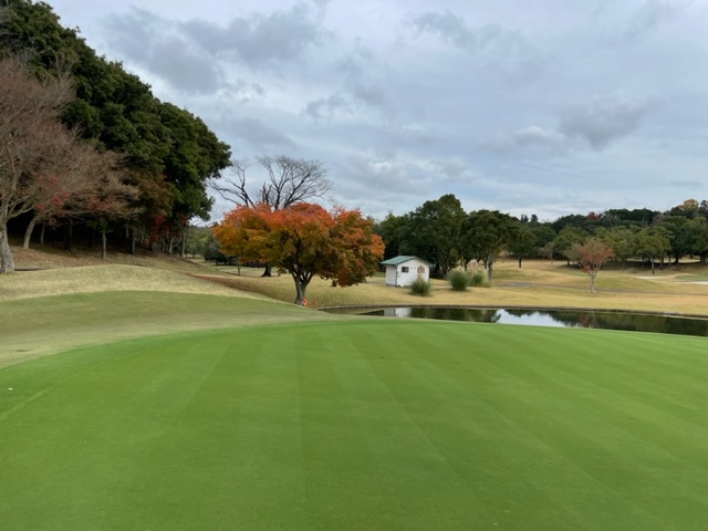 4番130yショートは、9アイアンで手前10mに1オン。無難にパー。同じくナイス1オンからM.KさんとS.Kさんも無難にパー。