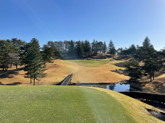 18番485yロングは、ドライバーはまずまず。5アイアンでレイアップ。残り98yからの52度がやっと池を越える。58度で寄せてパー。6mを沈めたK.Tさんもパー奪取。