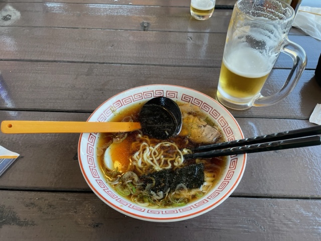 ランチはおにぎりとラーメンと焼き鳥といなだを食す。全部がなかなかグーです。