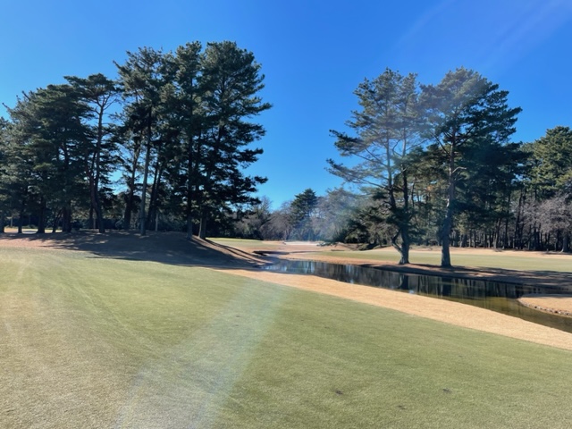 12番529yロングは、ドライバーは真ん中へ。5アイアンでクリーク手前へ。8アイアンでの3打目はちょいと手前へ。ナイスアプでパー。