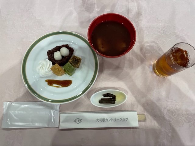 アテスト後、お風呂に。その後、お汁粉と甘味とドリンクをいただき、大利根を後にしました。