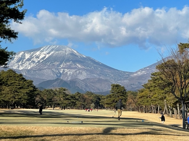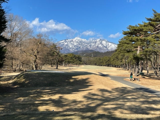 インから。飛ばし屋さんがいるので黒で行きます。豪華にも2キャディとなります。男体山が超綺麗です。縁の栃木県のS.Oさんとマッチで楽しみます。