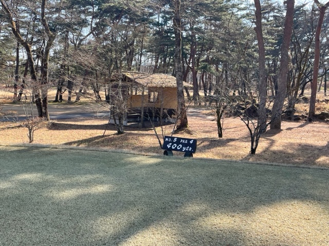 10番518yロングは、ドライバーは竜巻球で木に当たりセーフ。6アイアン、3wで左横へ。ナイスアプでしたがパターが入らず。紅一点M.Iさんが素晴らしいアプからナイスパー。ラッキーにも1アップ。