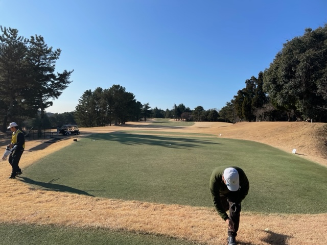 さて、西アウトからスタートです。Bグリーンなので、黒ティで行きます。