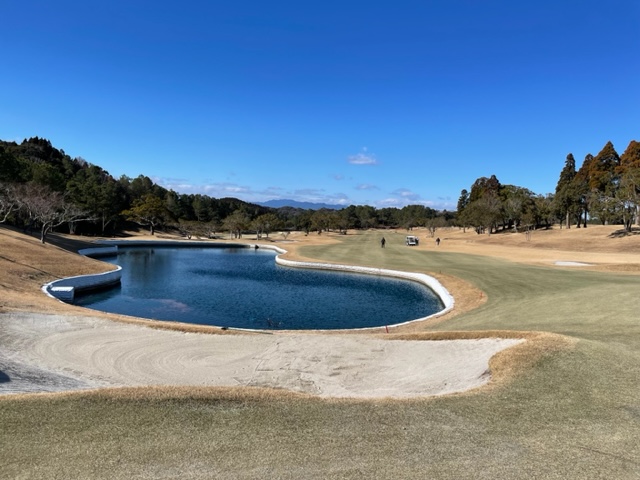13番165yショートは、7アイアンで打つもショート。手前のピンを意識しすぎて乗らず。やっとのボギー。見事な1オンからT.Bさんが無難にパー。また、ナイスアプからM.Fさんもパー。