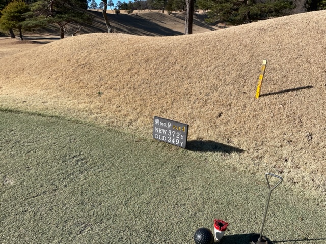 9番369yミドルは、これも同じ球。ちょっと恥ずかしい。セーフでしたが、14mに3オン。3パンチで6となる。