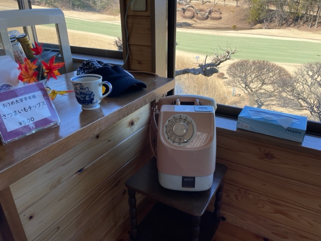 茶店で休憩。ここにはピンク電話がありました。