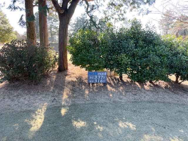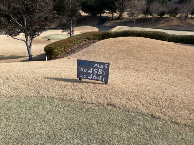 1番479yロングは、ドライバーは右へ。1ペナゾーンに行ったかな?が、球がない。その辺にドロップ。3打目として3wで打つもちょいとショート。ここからオーバー。5オンの7となる。