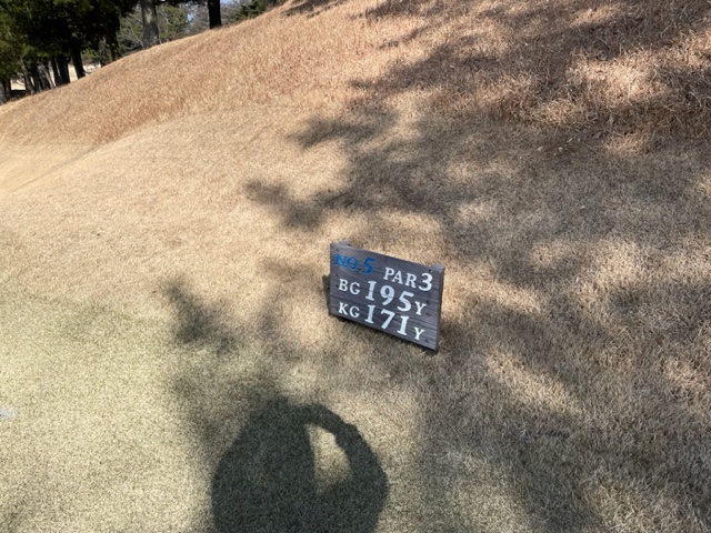 5番195y打ち下ろしショートは、5アイアンで打つもちょいとショート。ここから52度で転がすもデカい。カラーから3パンチでダボ。