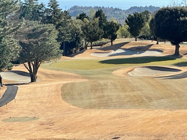 13番198y打ち下ろしショートは、5アイアンで打って左のカラーへ。パターで打つも2.5mショート。入らずボギー。しかし、ここからの眺めはホント絶景です。