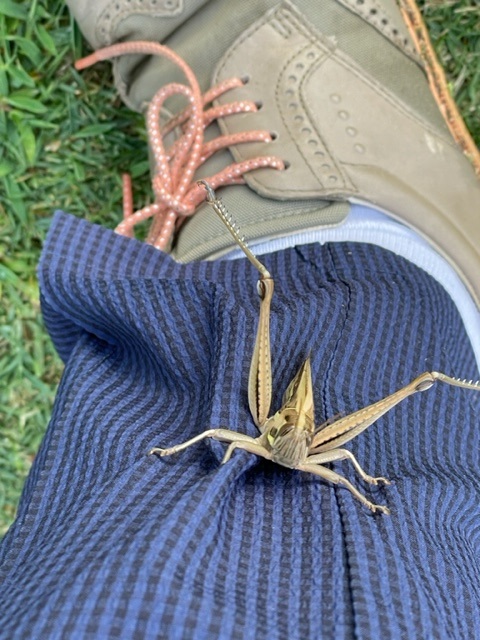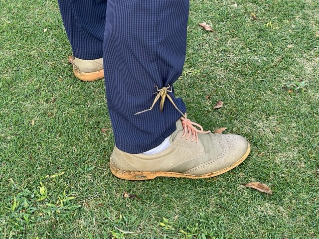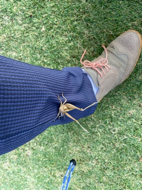 45回。1時間50分。道中、バッタにしがみ付かれてしまいました。こういうのは初めてでした。足首近くを誰かにつかまれている感じでした。ティショットを打っても離れず、セカンド地点まで歩いて行っても離れず。が、セカンドを打ったあたりからいなくなってしまいました。くっついている時はいじっかしい感じでしたが、いなくなるとなにやらとても寂しい思いをしました。