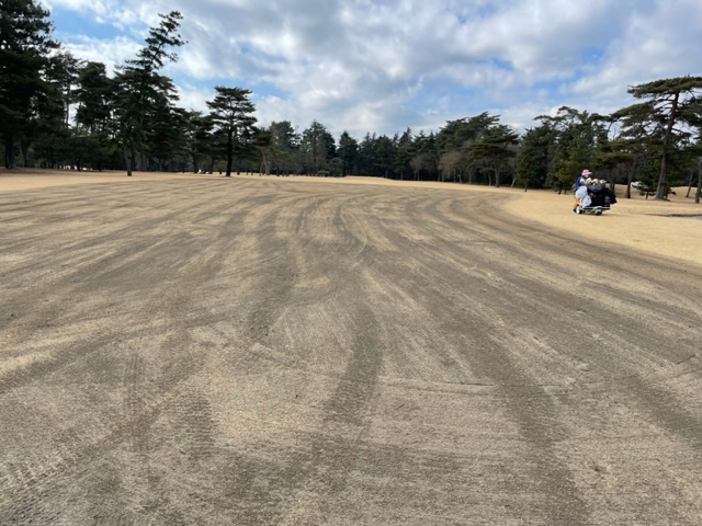 9番418yミドルは、ドライバーはナイス。が、大量の砂でバンカーみたい(笑)。3uで打つも左のバンカーイン。寄らず入らず。