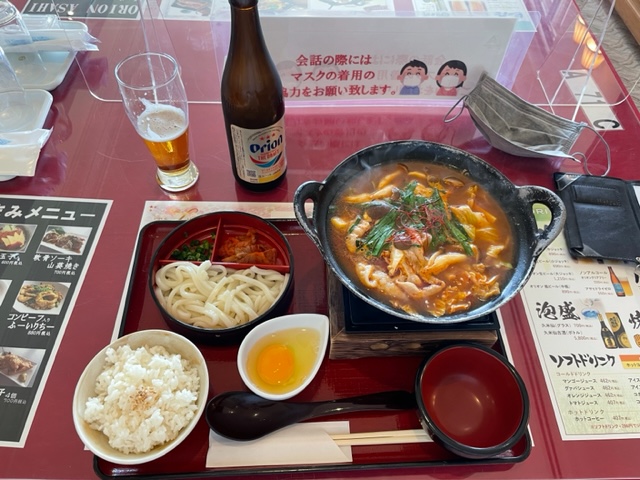 まずは、着替えて、レストランへ。チゲ鍋をいただきましたが、なかなかグーでした。ゆっくりオリオンビールと食していたら、火が消えてしまいましたが、スタッフの方が新しい燃料を持って来てくれました。なかなかのサービスじゃん。