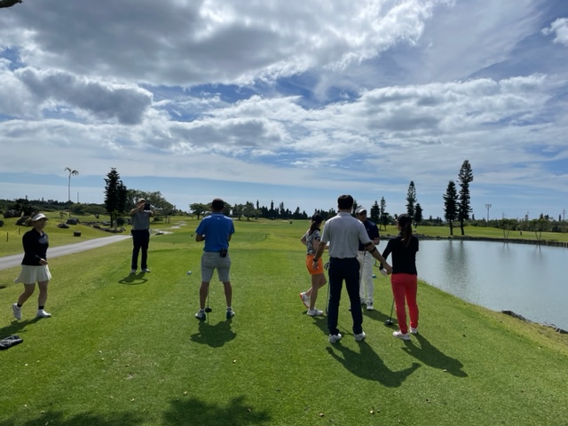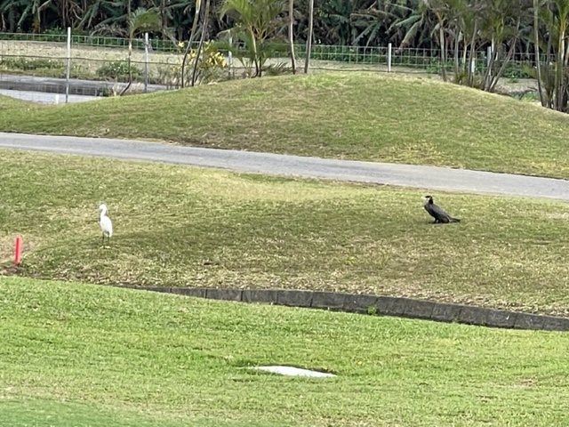 16番420yミドルは、ドライバーは竜巻球。随分と残った。3uで打つも全然届かず。寄らず入らず。しっかり2オンのプロとN.Yさんがともにパー。