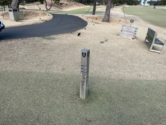 レストランでハムエッグを食し、4者ミ―ティングの後、パターを少々転がしてアウトから。ここ西はアウトがパー35になります。グリーンティから。