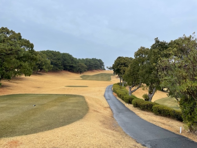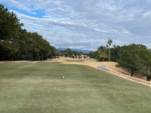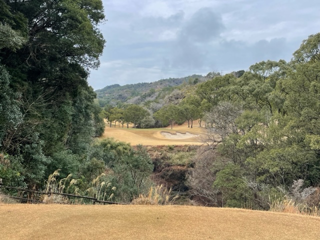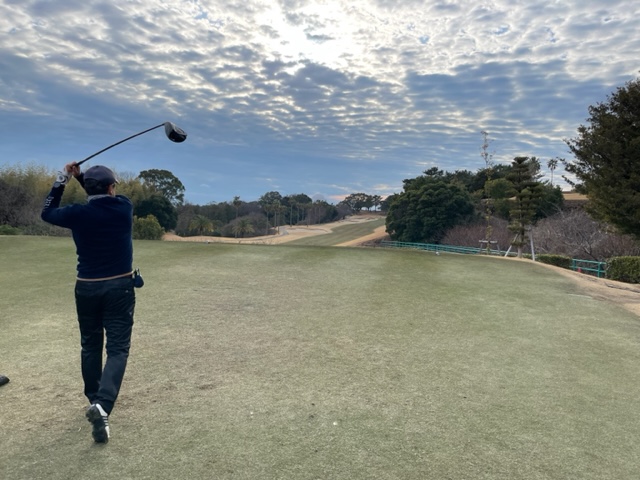 9番370yミドルは、ドライバーはナイス。残り150y上りを6アイアンで打つも引っ掛かりバンカーイン。ここからなんとか3mに寄せたが、パターがショボ。入らずボギー。ここも無難にパーとしたH.Kさんは中継ホールを全部パーの室戸を38回。素晴らしい。