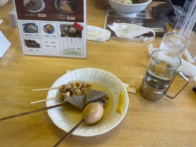ランチどころの黒潮亭で熱燗とおでんをいただく。おでんが美味い!!