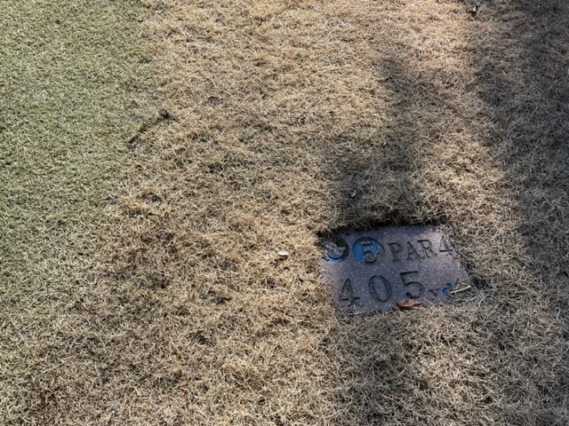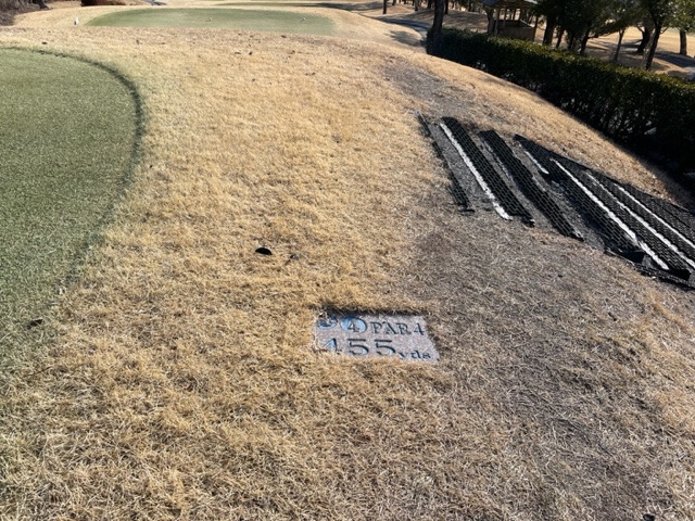 5番160yショートは、7アイアンで手前のカラー部分へ。ここからパターで1mに寄せたが、パターが入らずボギー。しっかり1オンさせたM.TさんとH.Yさんが無難にパー。
