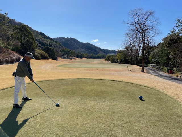 で、スタート。今日はキャディさんが付いてくれます。ありがたい。今日も青ティで進行します。