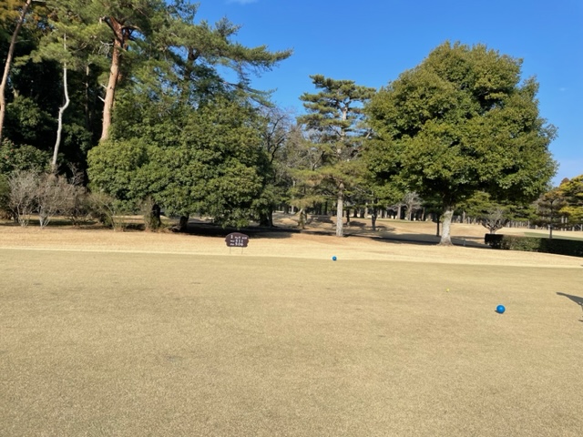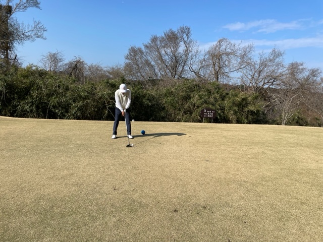 レストランで縁の皆さま方と歓談タイム。その後、時間になり、パターを少々転がしてスタート。今日はニューグリーンで青ティから進行します。